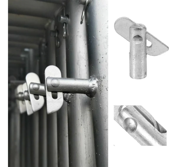 El perno tipo mariposa es el seguro mecánico más común en los sistemas de andamio ligero. Se compone de un vástago metálico y un extremo aplanado o en forma de “alas” (mariposa) que permite su fácil manipulación manual.