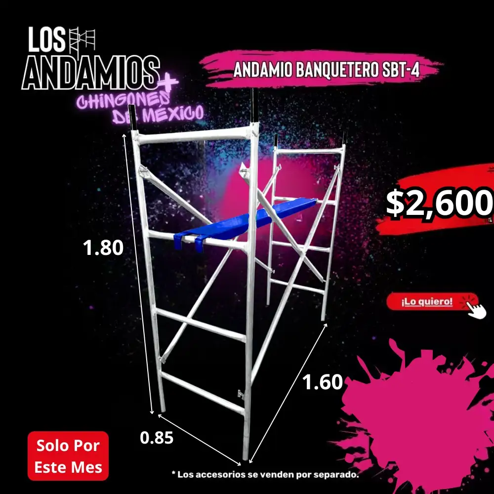 Si estás buscando rendimiento real en obra, este es el momento de comprar. El Andamio Banquetero SBT-4 lo tienes hoy en $2,800 MXN (precio antes de IVA), directamente con fabricantes. No es una oferta común: es una oportunidad diseñada para quien entiende el valor de invertir bien desde el inicio. Fabricado con tubería de acero galvanizado, soldadura en microalambre y sistema de ensamble robusto, este andamio está diseñado para trabajos reales: firmeza, durabilidad y seguridad en cada uso. Su estructura permite un armado rápido, estabilidad operativa y desempeño confiable en obra ligera, interiores y espacios reducidos. Incluye: 2 caras tipo escalerilla Crucetas de seguridad 4 niples de ensamble Además, esta promoción tiene un segundo nivel de valor: En la compra de 2 andamios, obtienes un 5% de descuento en TODOS los accesorios. Esto significa optimizar tu inversión completa: plataformas, ruedas, niveladores o barandales a menor costo. No es solo un andamio, es un sistema que puedes escalar según tu proyecto. Y mientras más completo lo compres hoy, menos tendrás que gastar después. Este tipo de promociones no se mantienen activas por mucho tiempo, especialmente cuando el producto tiene alta rotación. Compra ahora y asegura disponibilidad directamente con fabricante.