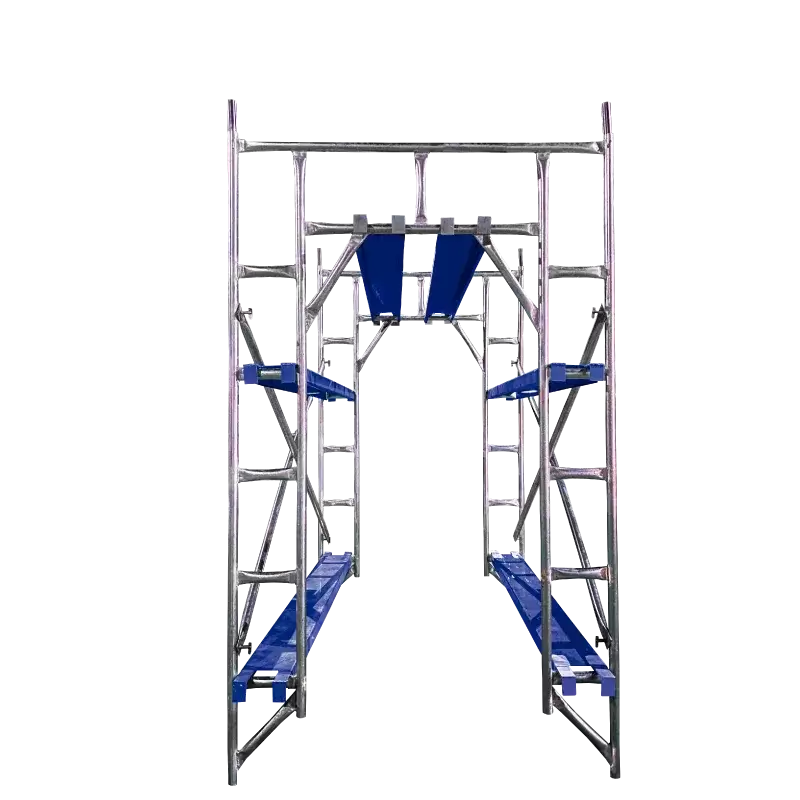 Andamio lIgero tipo pasarela, constituido con 2 marcos que permiten el transito de peatones a travez de el , creando un puente lo suficientemente seguro y amplio para transitar, se adapta perfectamente con el andamio tradicional, medida estándar. y tiene una capacidad de carga de 500 kg por modulo.