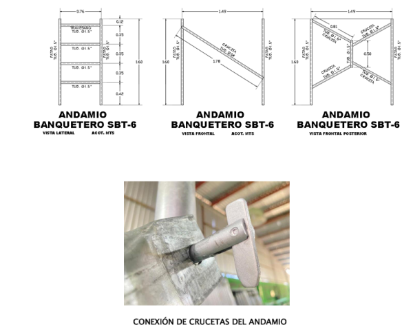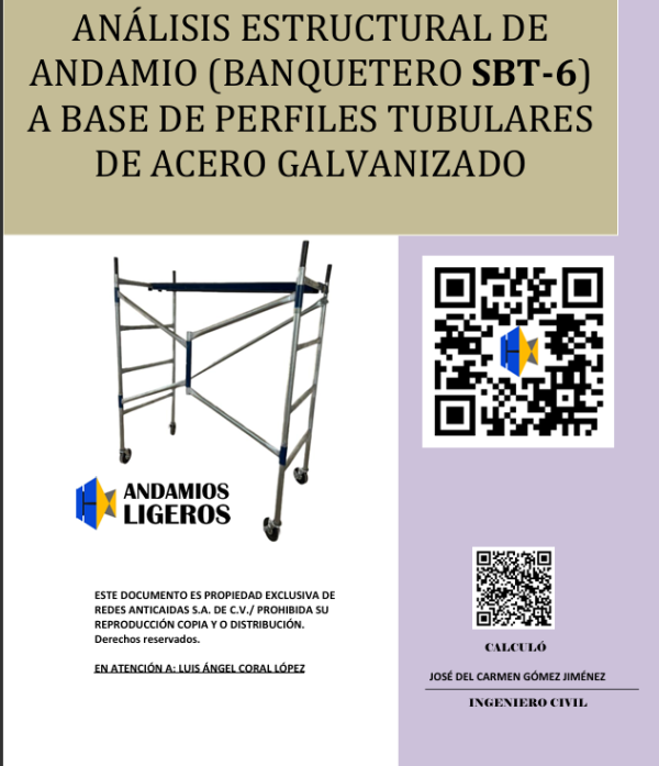 1. PROPÓSITO. EL PROPÓSITO DEL PRESENTE TRABAJO ES LA REVISIÓN DE LA CAPACIDAD ESTRUCTURAL DEL ANDAMIO BANQUETERO SBT-6 CON DISTINTOS ESCENARIOS DE CARGAS. ESTÁ ESTRUCTURA ESTA FORMADA CON PERFILES TUBULARES DE ACERO GALVANIZADO CAL.20. ESTE ANÁLISIS ESTÁ RESPETANDO ESPECIFICACIONES Y NORMAS.
