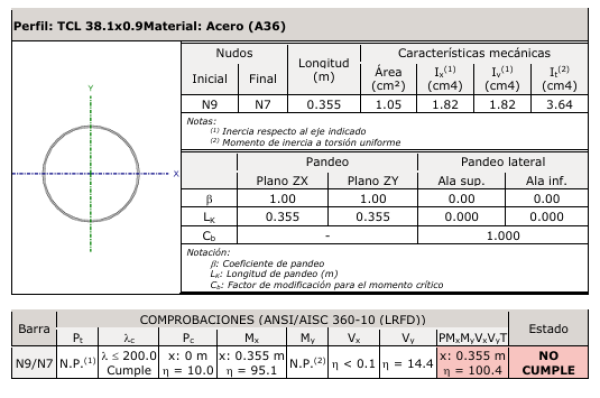 ANÁLISIS DEL TUBO POSTE MAS ESFORZADO DE 1.5” (PULGADAS) CAL.20 DE 0.35 m DE LONGITUD.